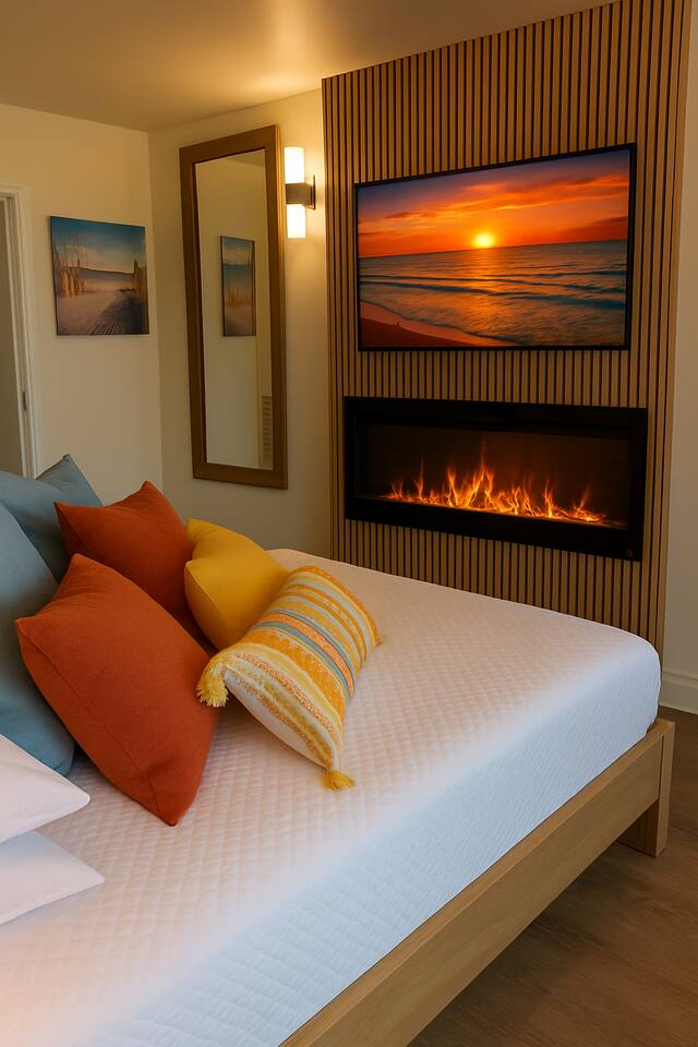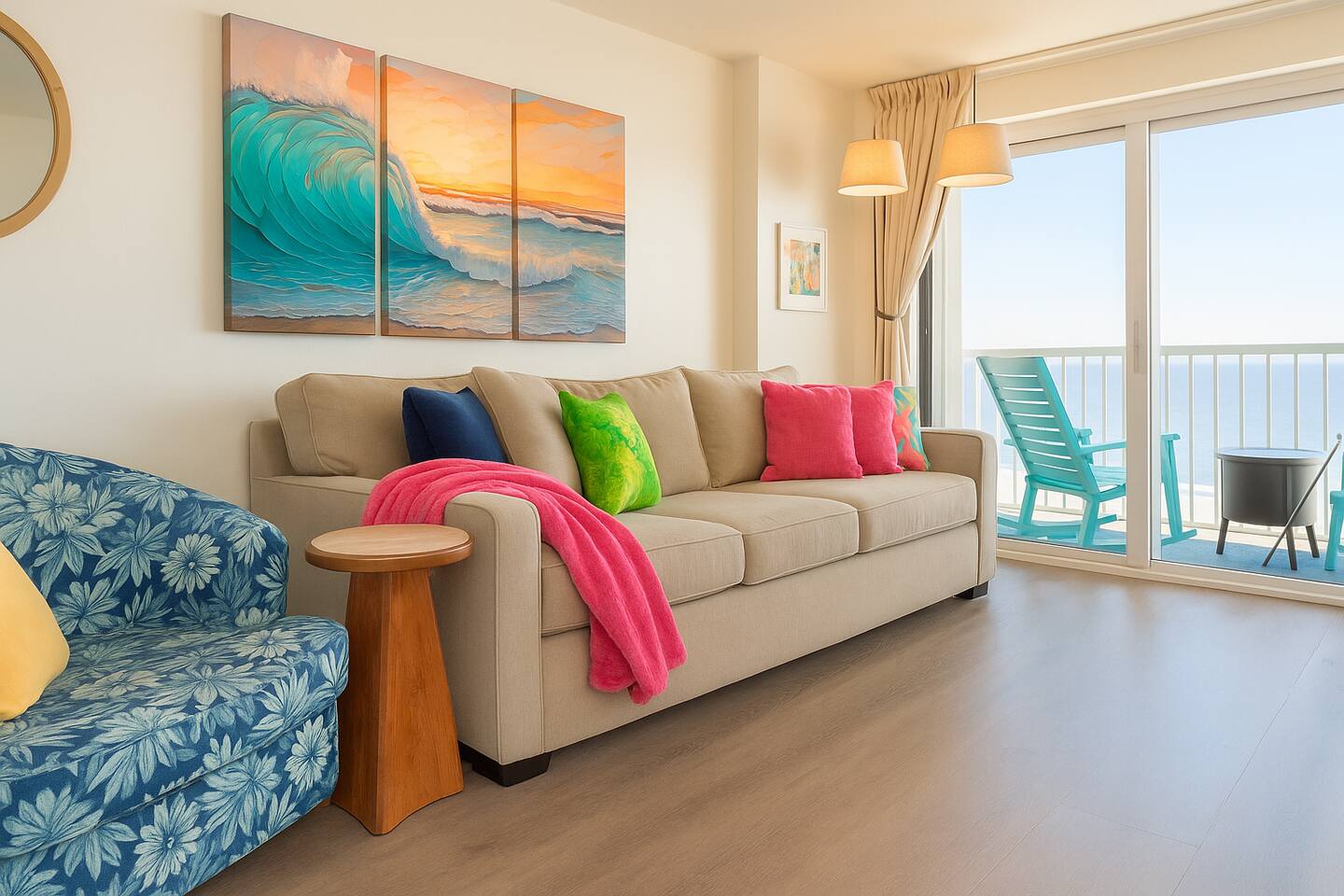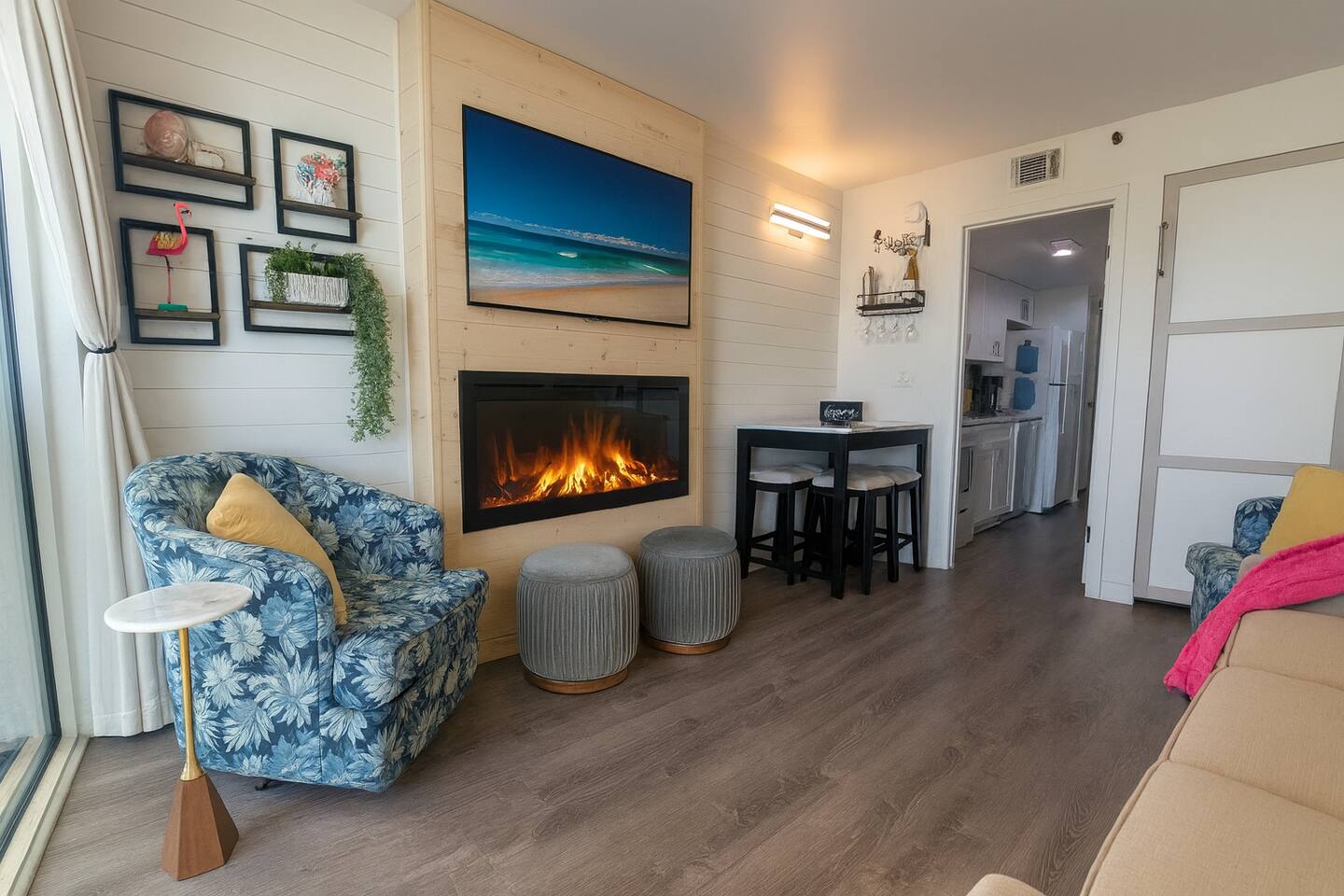 π‘ The Space Welcome to your home away from home on the 15th floor of the oceanfront Seawatch Resort! This beautifully remodeled 1-bedroom, 1-bath condo offers a perfect blend of comfort, style, and coastal charm β ideal for couples, families, or small groups. ποΈ Sleeping Arrangements: King bed in the private bedroom Murphy bed (pulls down easily for extra sleeping space) Sofa bed in the living room All beds are outfitted with comfortable mattresses and plush pillows to ensure a restful night's sleep. π₯ Cozy & Entertaining: Fireplaces and media centers in both the living room and bedroom β great for winding down after a day at the beach Smart TVs with streaming options so you can enjoy your favorite shows and movies π³ Well-Stocked Kitchen: The full kitchen comes equipped with everything you need β cookware, utensils, dishes, coffee maker, toaster, and more β making it easy to enjoy meals in when you choose. π Ocean Views: Step out onto your private balcony and take in breathtaking oceanfront views β perfect for coffee at sunrise or cocktails at sunset. ποΈ Resort Perks: Direct beach access just steps away 5 pools, 10+ hot tubs, a lazy river, and a fire pit Tiki bar, on-site snack bar, gym, and laundry facilities Secure free parking, elevators, and luggage/shopping carts for easy check-in and check-out π Convenient Location: You're just minutes from the best of Myrtle Beach β shopping, restaurants, entertainment, and attractions are all nearby. Whether you're here to relax, explore, or do a little of both, this condo offers everything you need for a memorable and effortless stay.
